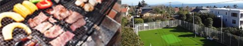 施設内にバーベキューテラスやゴルフヤード、カラオケなどを設置しております。